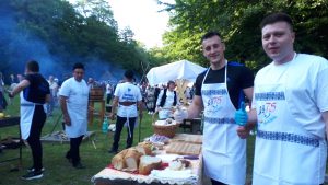 Echipa Junilor a mai pregătit pastramă de oaie, cârnați de porc și oaie la grătar, pită de casă cu ceapă roșie și plăcintă cu brânză.