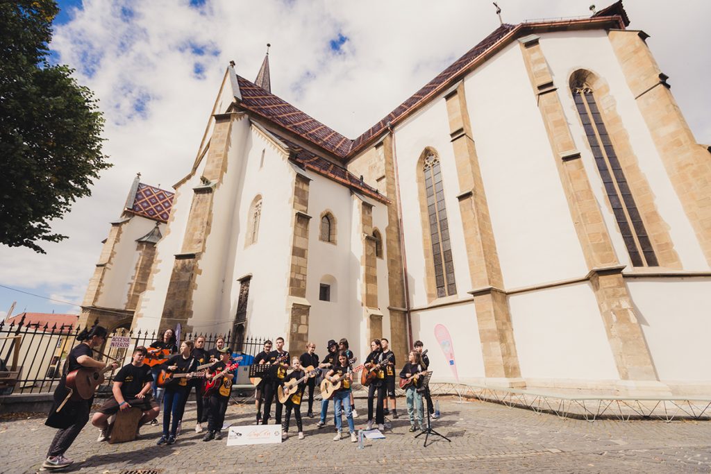 În weekend s-a desfășurat la Muzeul Astra din Sibiu cea mai mare întâlnire a chitariștilor români – Guitar Meeting, eveniment aflat la cea de-a șaptea ediție. În cadrul Concertului Manifest, care a avut loc sâmbătă, 18 septembrie, au cântat în zona scenei de pe lac 475 de chitariști veniți la Sibiu din 28 de orașe din România, special pentru acest moment unic.