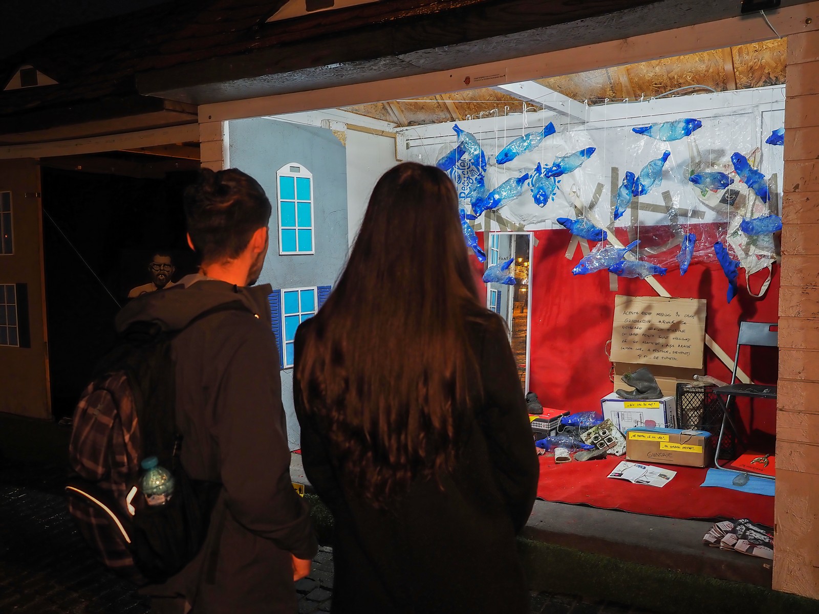 Sergiu Chihaia este un artist născut în Republica Moldova, iar în prezent trăiește și lucrează în capitală. El a încercat, alături de Tudor Șt. Popa, să transpună vizitatorul într-un mediu respingător pe care preferăm adeseori să îl negăm. Expoziția intitulată sugestiv “Ești un Gunoi” a fost realizată din deșeuri adunate în ultimele săptămâni din râurile din județul Sibiu, atât de autori cât și de alți sibieni ce au decis să se alăture expoziției. “Pungi de plastic, doze de aluminiu, pet-uri, sticle și prezervative, încălțăminte, covoare, mobilă, jucării… Acesta este mediul în care gunoaiele aruncă cu nepăsare obiecte străine cu care peștii sunt obligați să se adapteze. Așa arată lumea lor. A peștilor. Deveniți și ei cu timpul… de plastic.” descrie tema expoziției curatorul acesteia, Tudor Șt. Popa.
