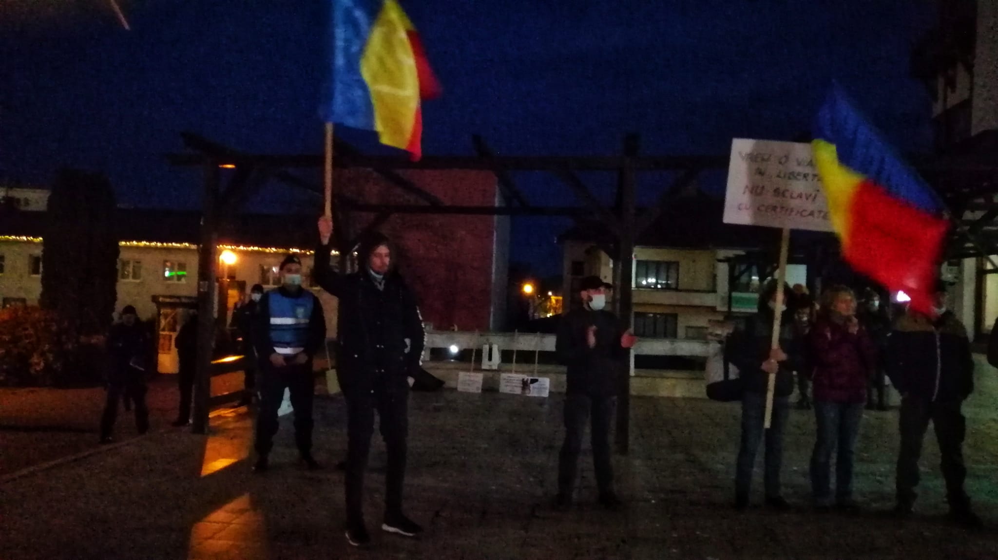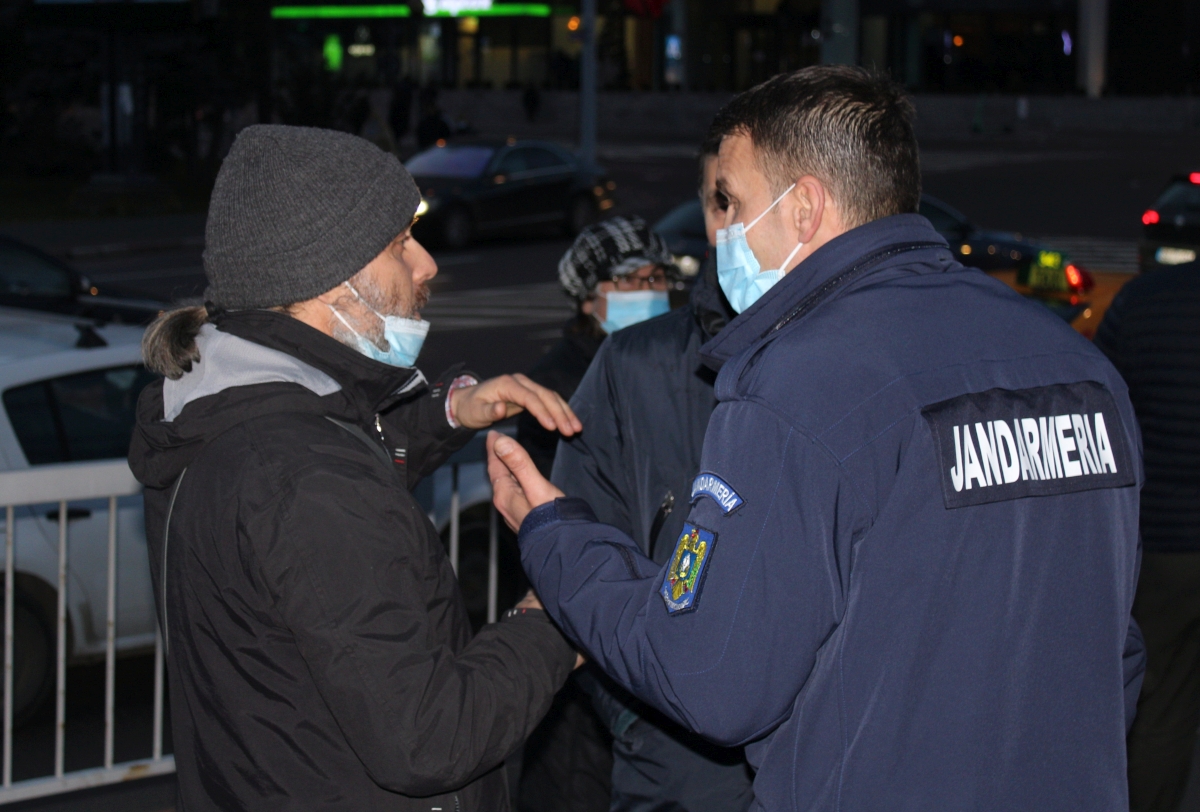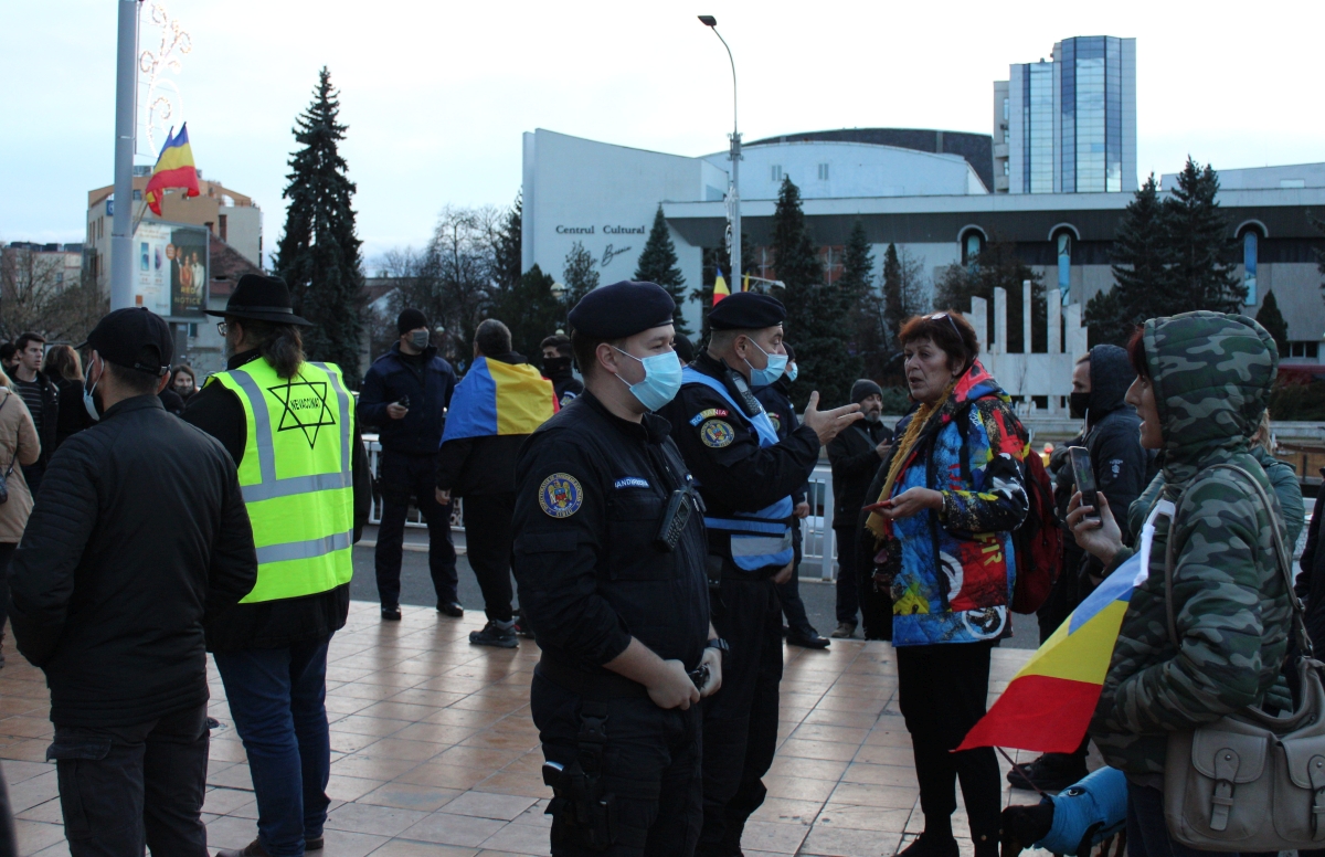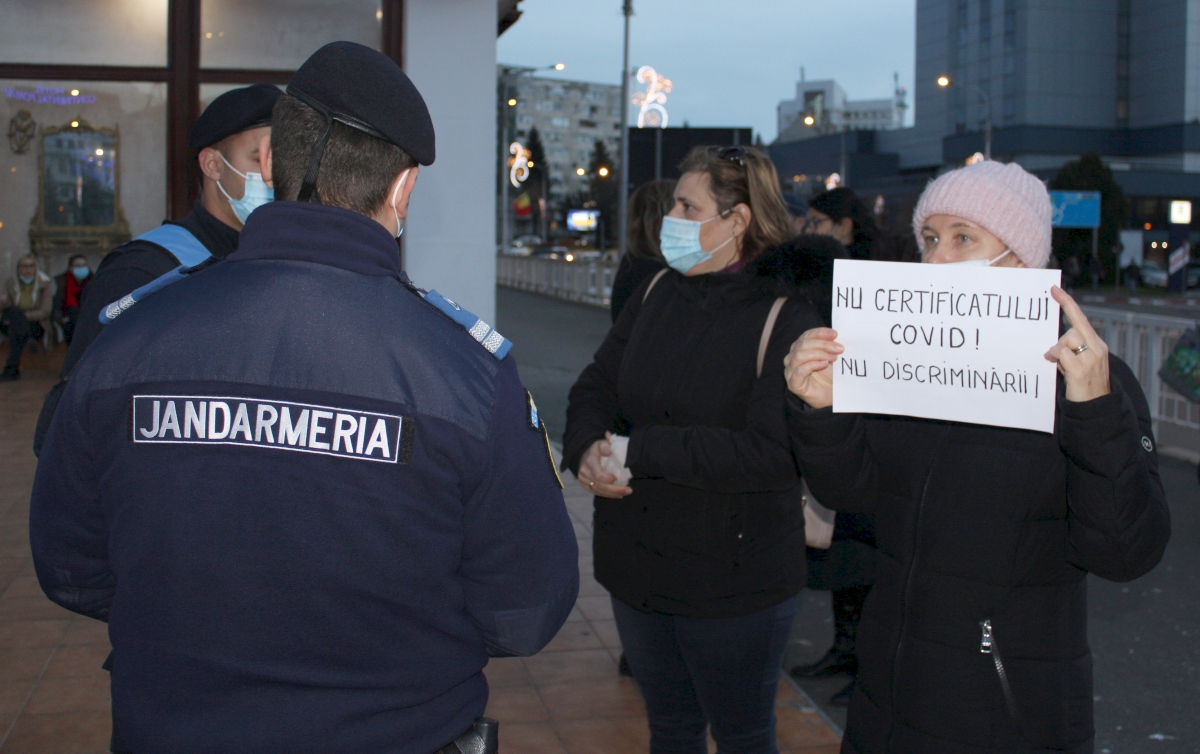 Astăzi, jandarmii i-au întrebat de certificatul verde, pentru că o adunare publică se poate desfășura doar cu participarea persoanelor ce dețin certificat verde.