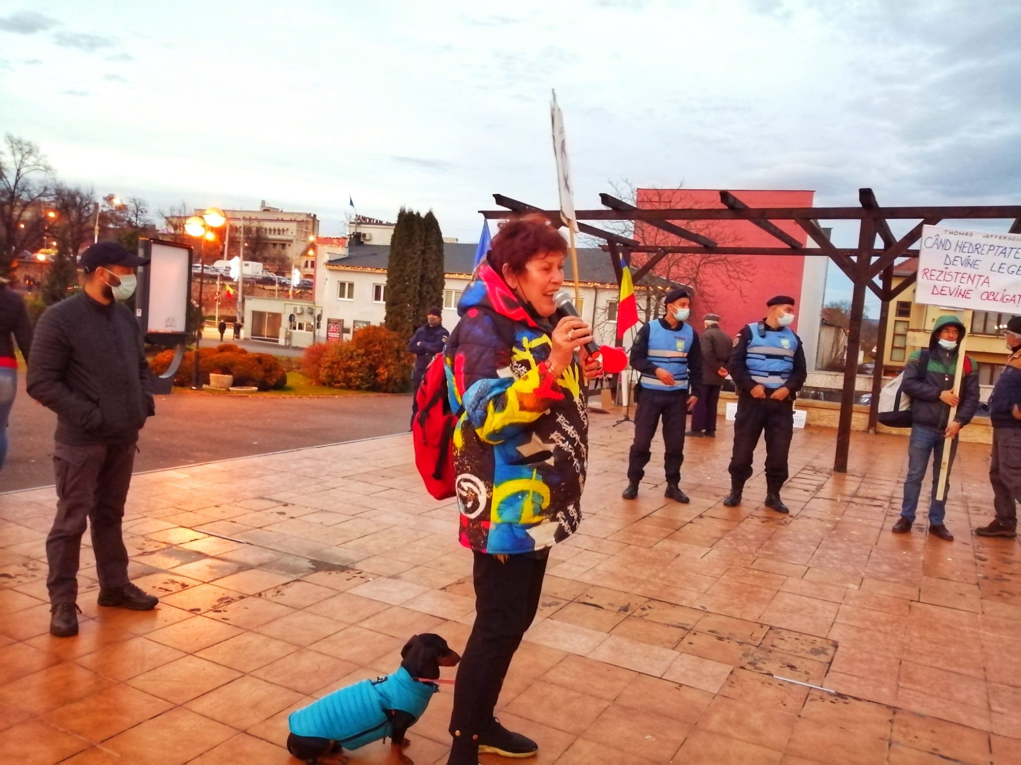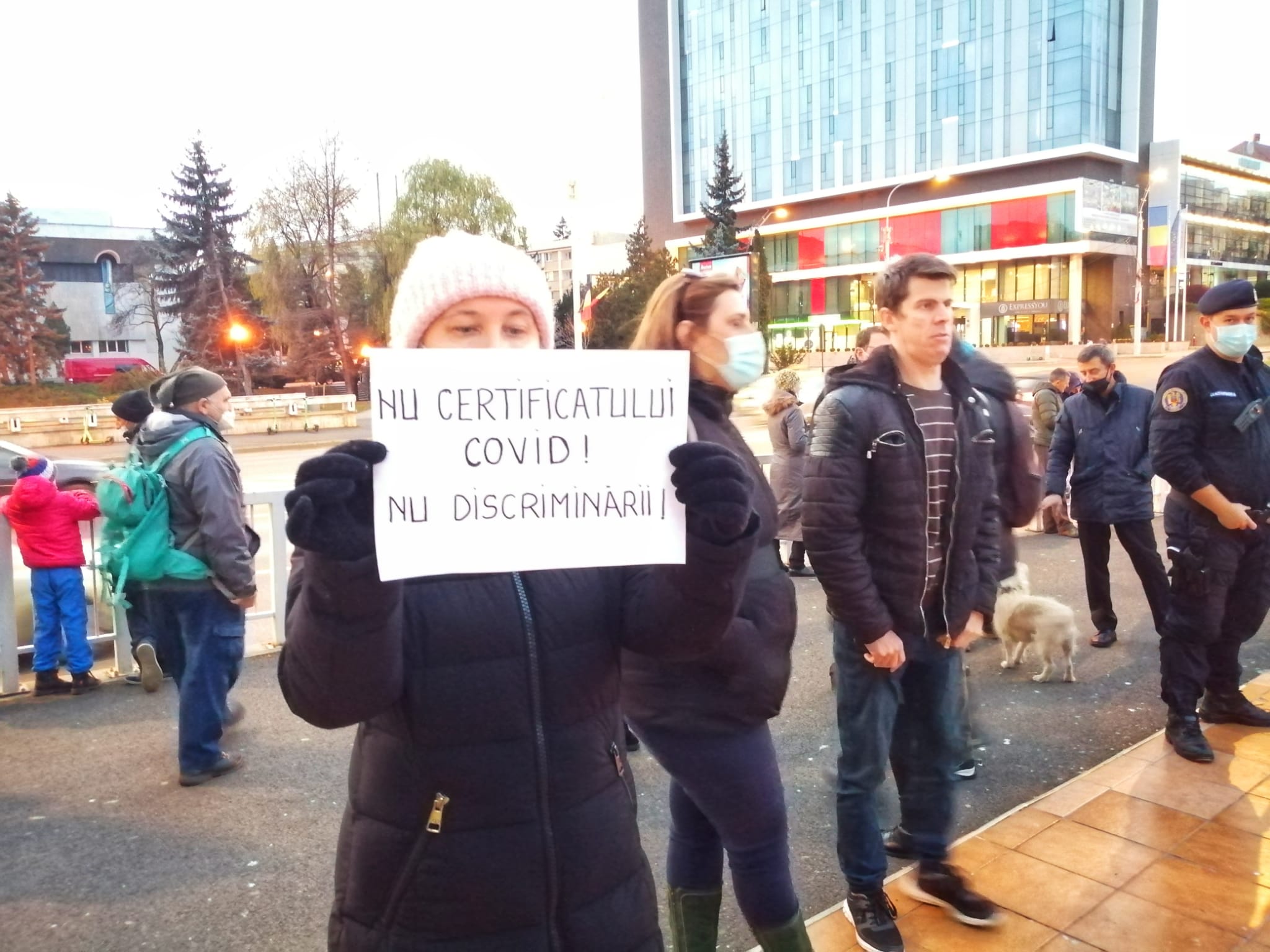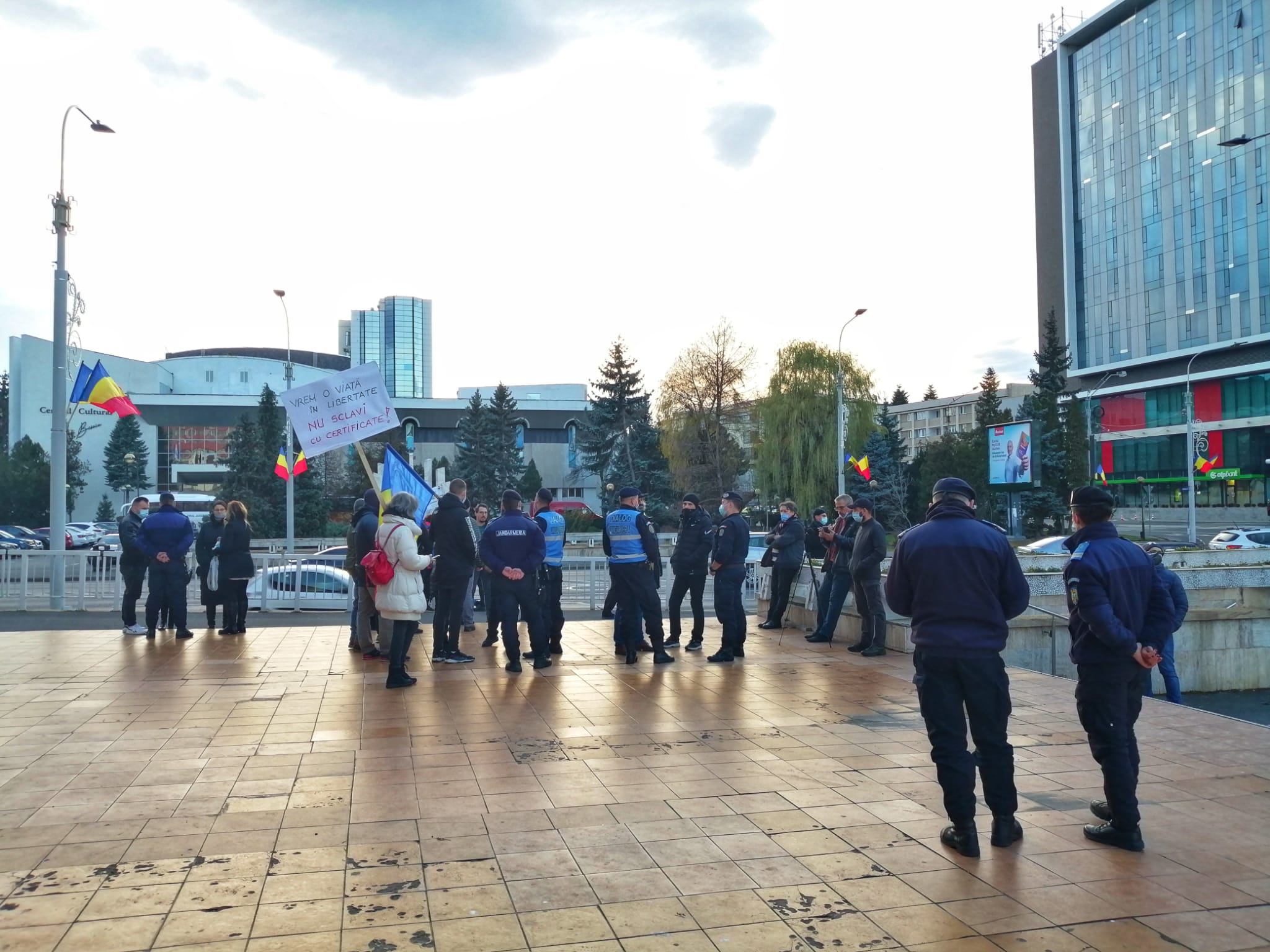Astăzi, jandarmii i-au întrebat de certificatul verde, pentru că o adunare publică se poate desfășura doar cu participarea persoanelor ce dețin certificat verde.