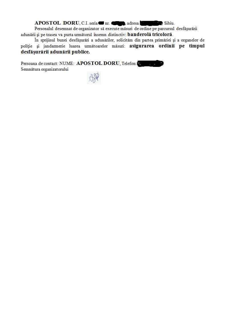 „Din punct de vedere cultural și religios, Iisus s-a născut într-o iesle, nu în Târgul de Crăciun. Dacă autoritățile sibiene își discriminează concitadinii și condiționează participarea în Târgul de Crăciun de o hârtie igienică verde neconstituțională, credincioșii nevaccinați diresc să sărbătorească Crăciunul în stradă, pe Esplanada din fața magazinului Dumbrava, cu colinde și cântece patriotice, cu steaguri și bannere”, spune Apostol.