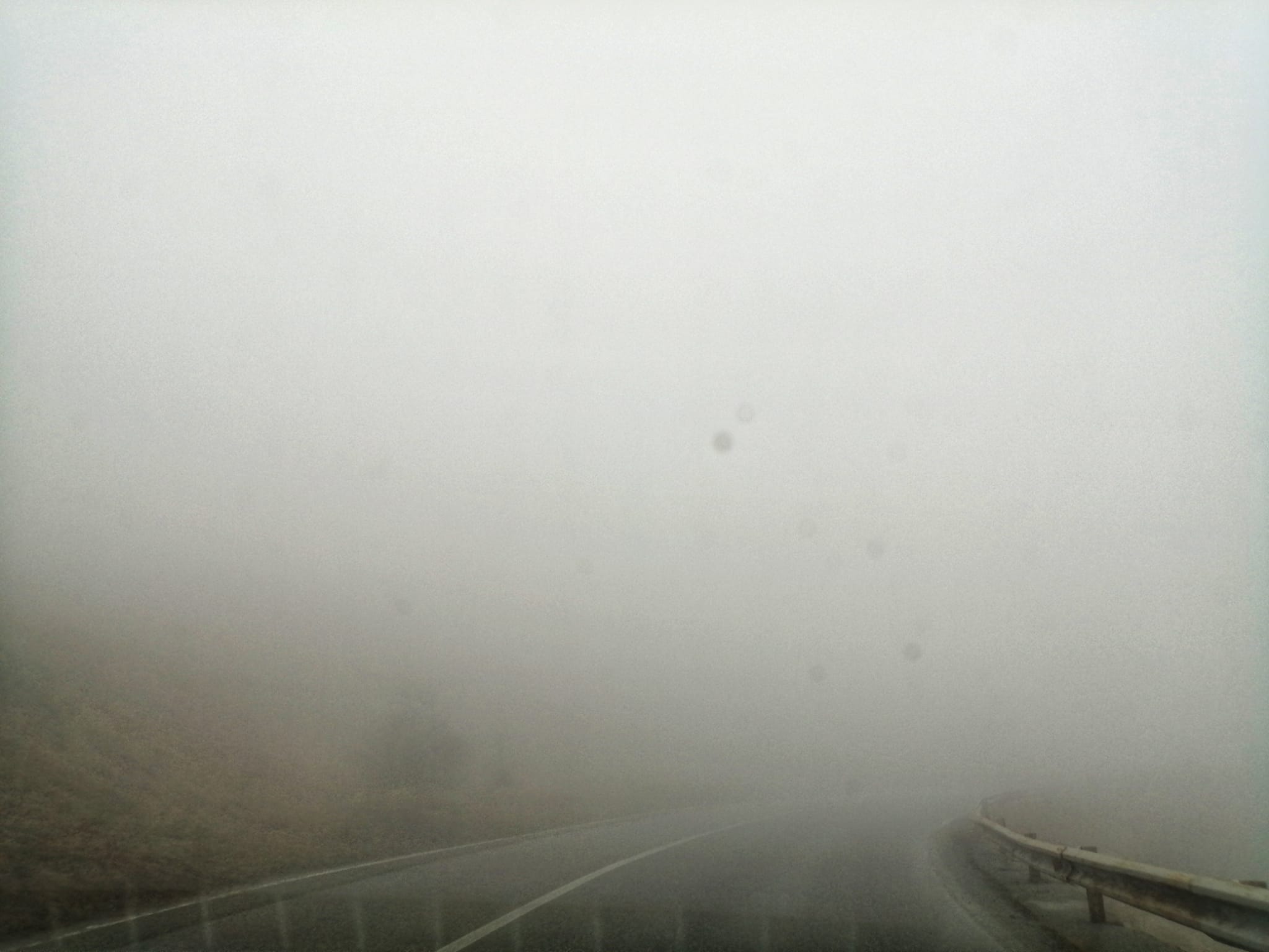 Pe DJ 106 A Sibiu – Rășinari – Păltiniș, ceața este densă, astfel că vizibilitatea este foarte scăzută.