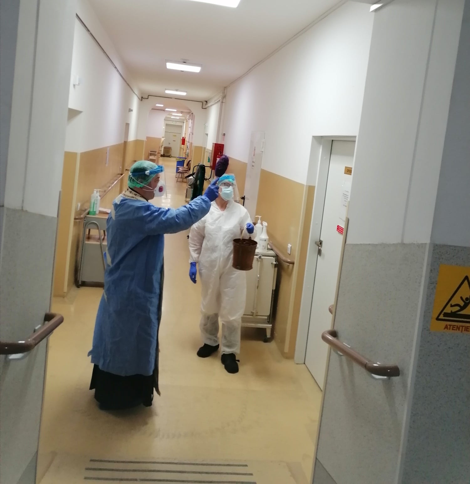 Ulterior, au fost sfințite pavilioanele unității sanitare, precum și personalul Spitalului și pacienții din toate saloanele de la Non- Covid, iar, în final, pacienții din Compartimentul COVID-19.