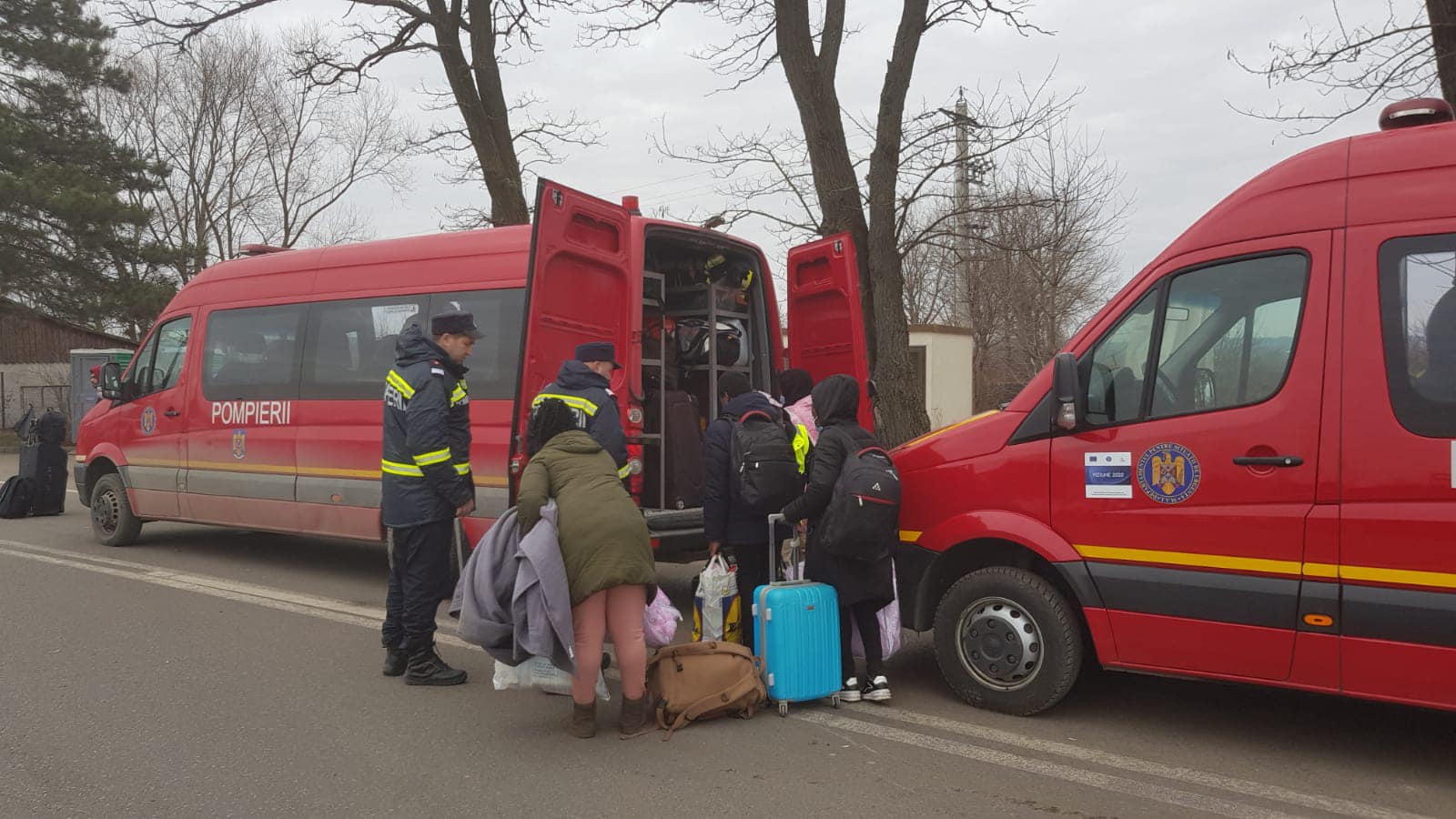 16 microbuze de transport persoane din cadrul inspectoratelor pentru situații de urgență din județele Sibiu, Alba, Bacău, Bistrița-Năsăud, Brașov, Cluj, Mureș și Neamț au ajuns in Vama Siret din județul Suceava.