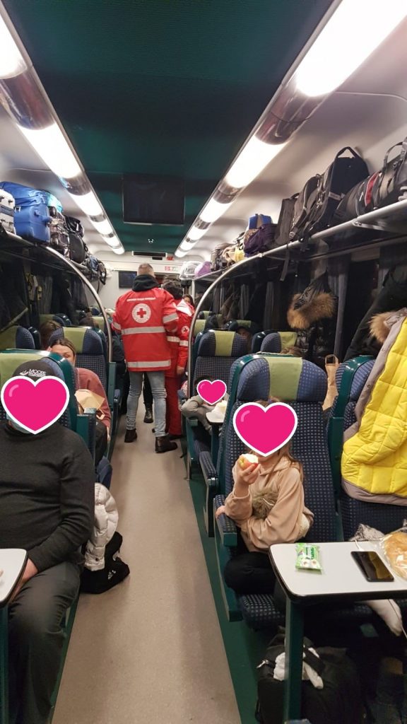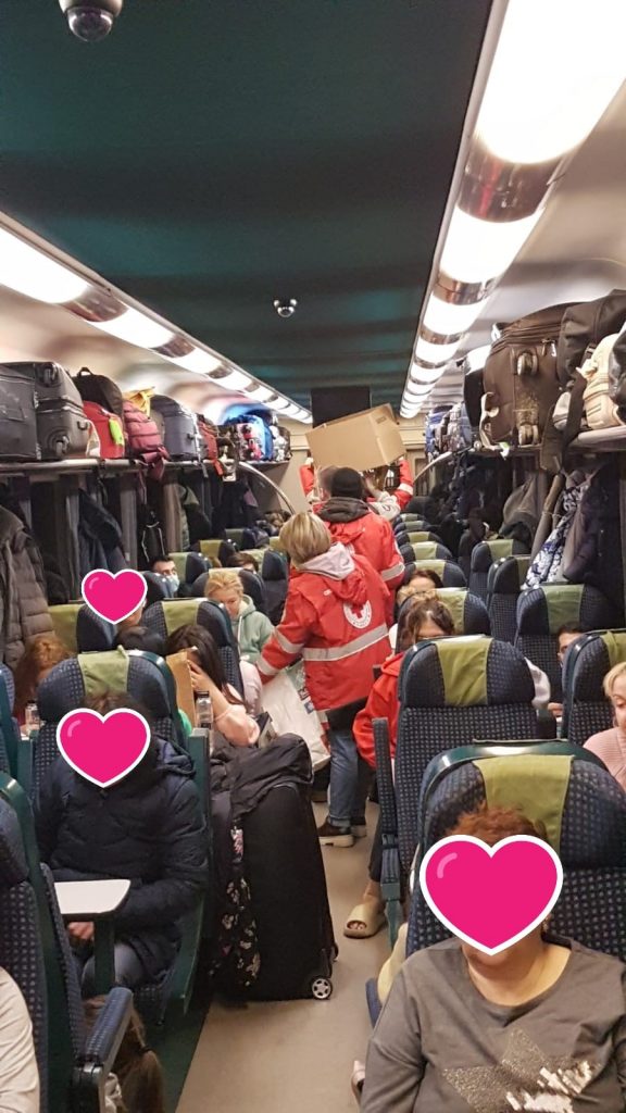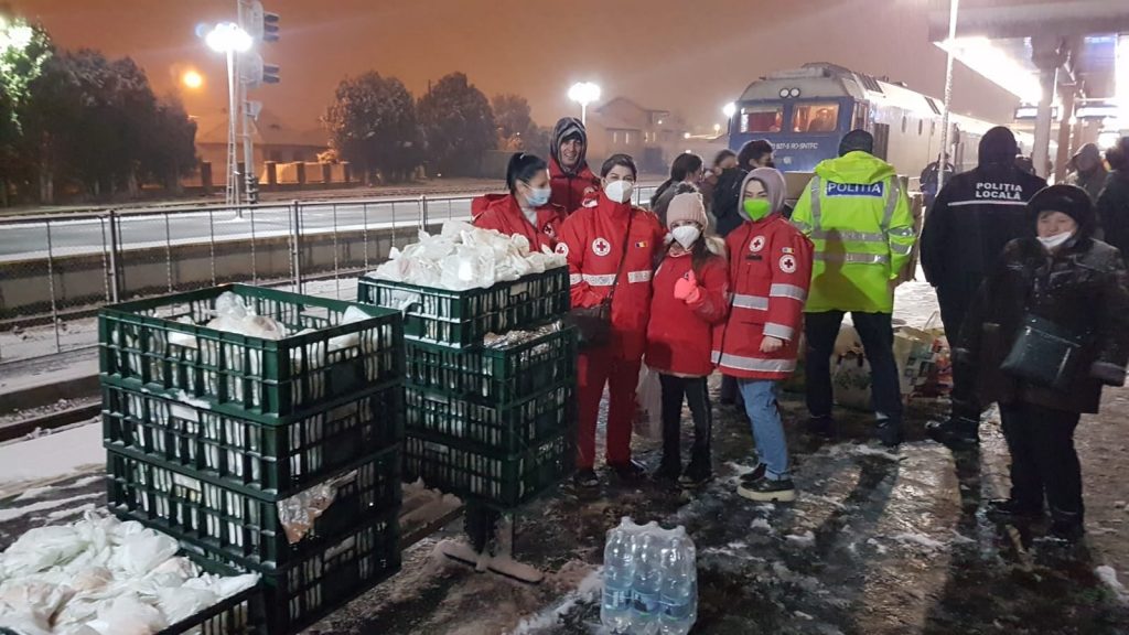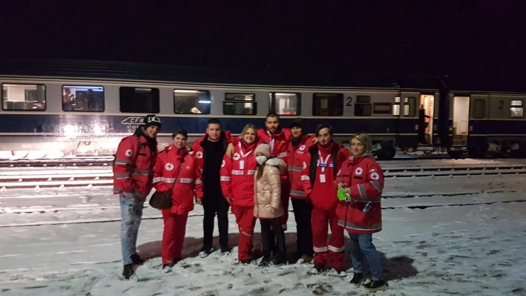„În mare grabă, și încărcați cu multe bunătăți zece voluntari ai Crucii Roșii Sibiu au urcat în tren, iar până la următoare oprire, Sebeș Alba, au împărțit toate aceste pachete. Au coborât în gara din Sebeș unde au fost preluați cu mașinile de alți doi voluntari inimoși ai Crucii Roșii Sibiu. Mulțumim Marius și Sorin că i-ați adus înapoi acasă. Cea mai tânără voluntară, Patricia, alături de tatăl ei Eugen, a împărțit jucării de pluș copiilor din tren. La vagoanele cușetă, voluntarii noștri au fost ajutați de o ucraineancă pe nume Lina să împartă pachetele. Conducerea Gării Sibiu ne-a fost alături și le mulțumim lor și tuturor celor implicați”, au explicat reprezentanții Crucea Roșie Sibiu.