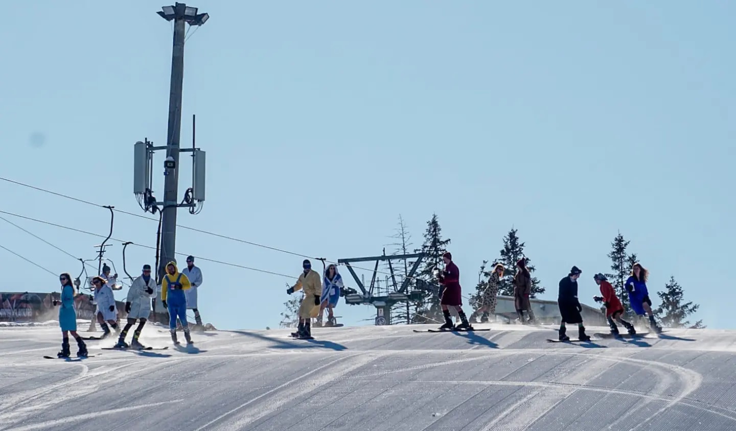 Zeci de sibieni și nu numai și-au făcut curaj să iasă pe pârtie în halate de baie, în ciuda temperaturilor scăzute.