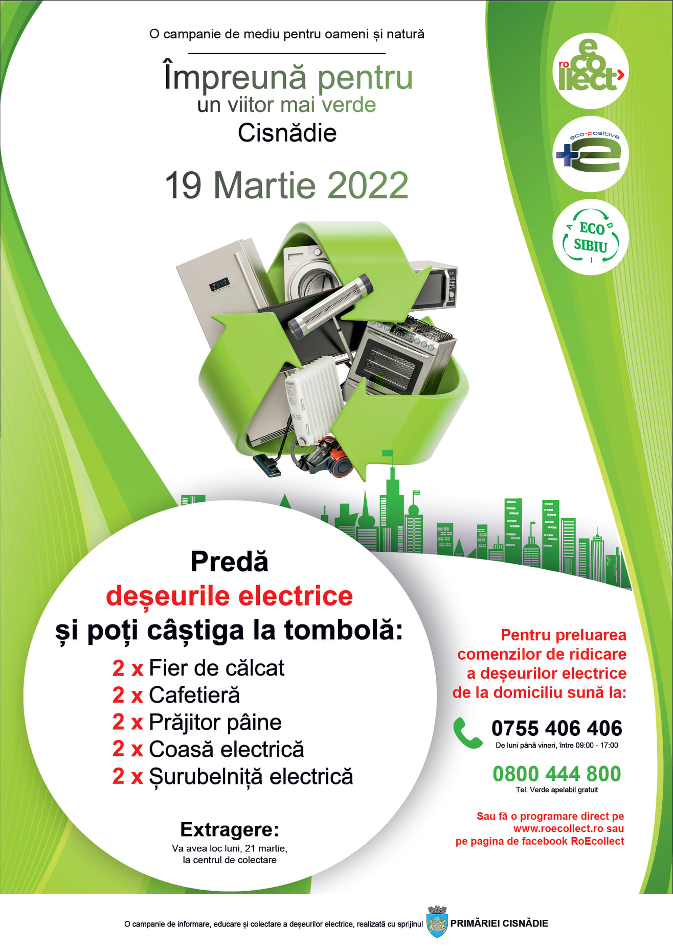 De asemenea, cisnădienii pot completa și formularul online disponibil AICI roecollect.ro/solicita-ridicare-deee.