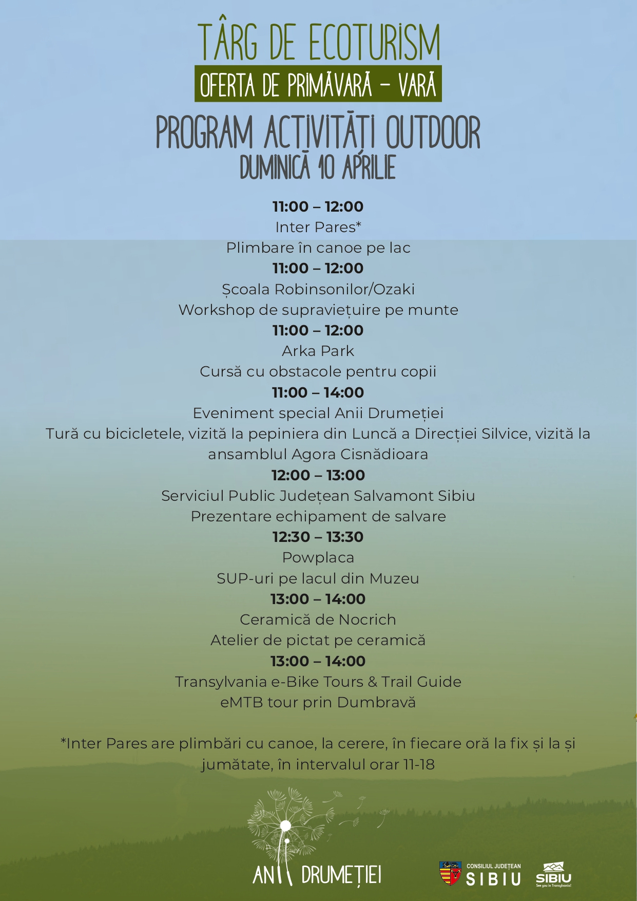 „Evenimentul este dedicat iubitorilor de turism sustenabil și experiențe memorabile create cu resurse locale. Cea de-a doua ediție se concentrează pe promovarea activităților în aer liber dedicate întregii familii, de la mic la mare, cu propuneri de petrecere a timpului liber în natură și în împrejurimile Sibiului”, arată organizatorii.