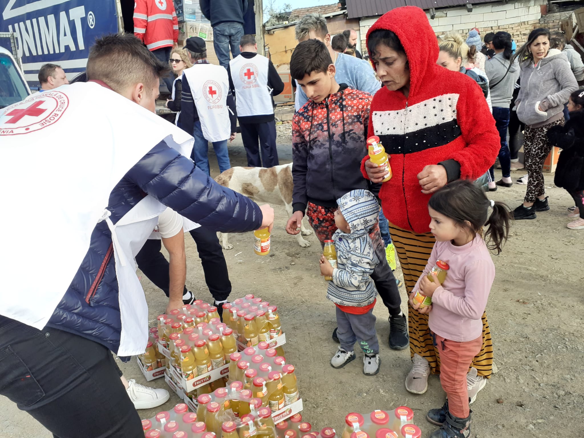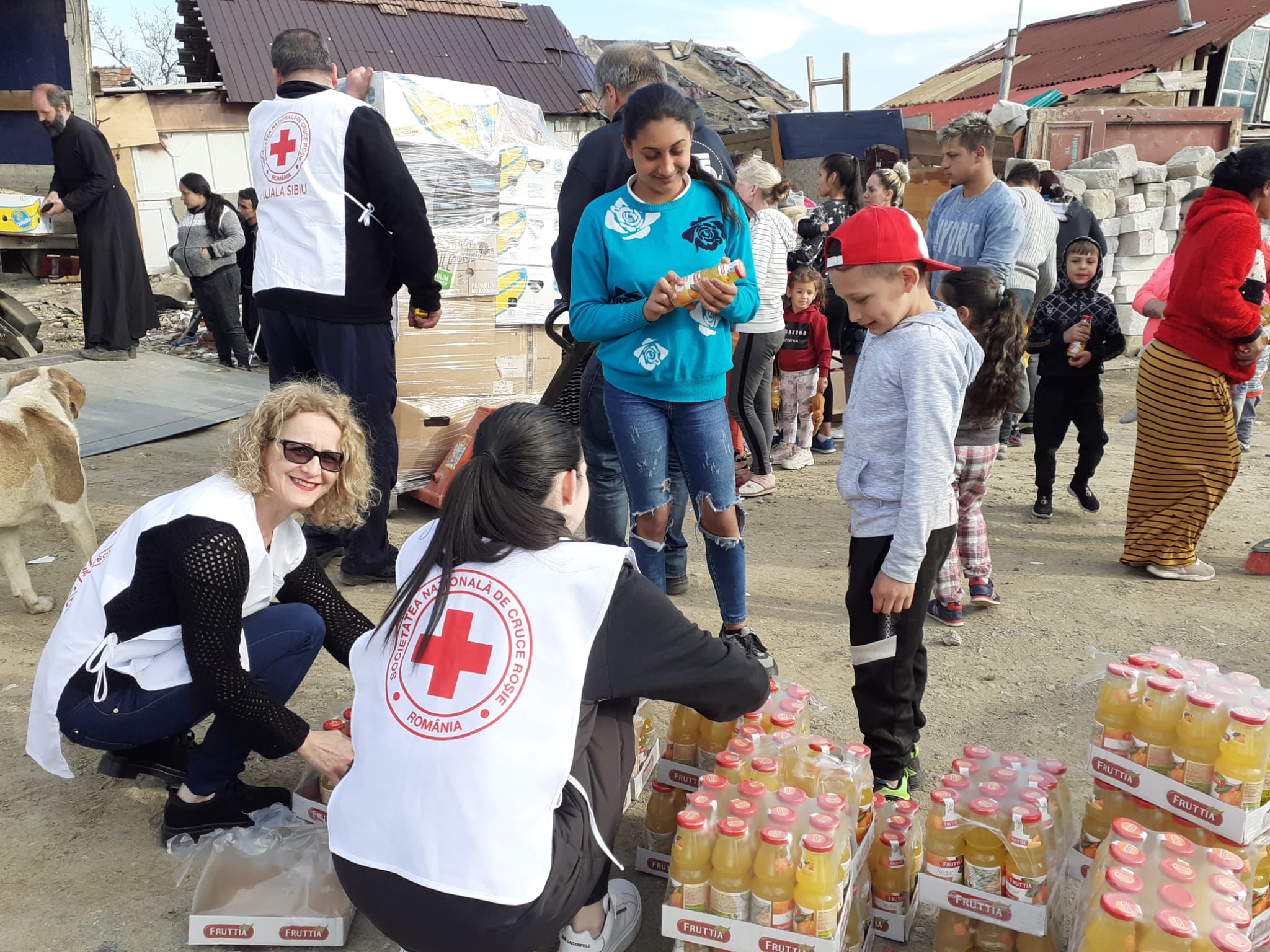 Voluntarii Crucii Roșii Sibiu au fost prezenți în comunitatea din Gușterița, unde trăiesc aproximativ 100 de familii vulnerabile și au împărțit imbrăcăminte, încălțăminte dar și jucarii și sucuri pentru cei mici.