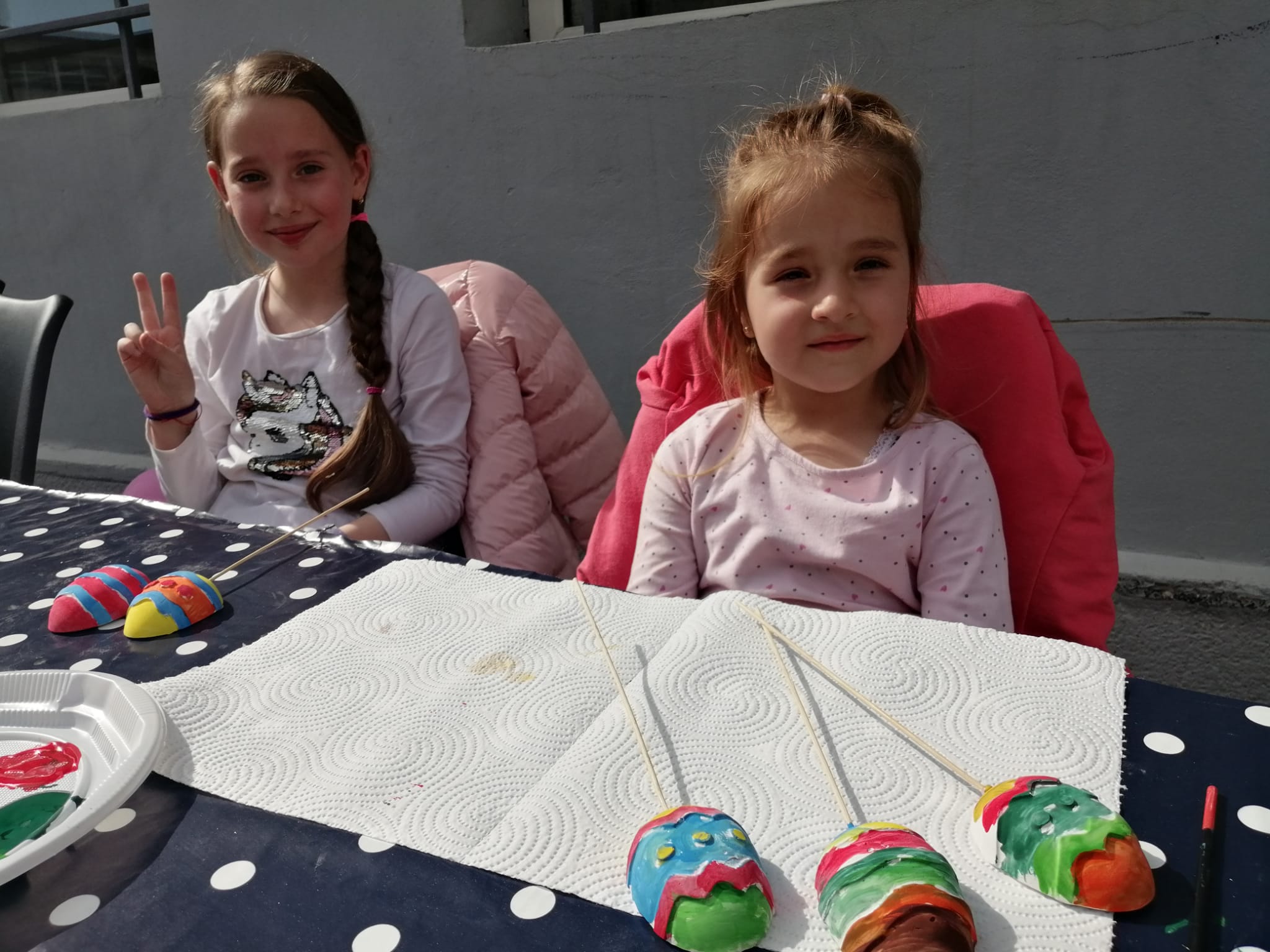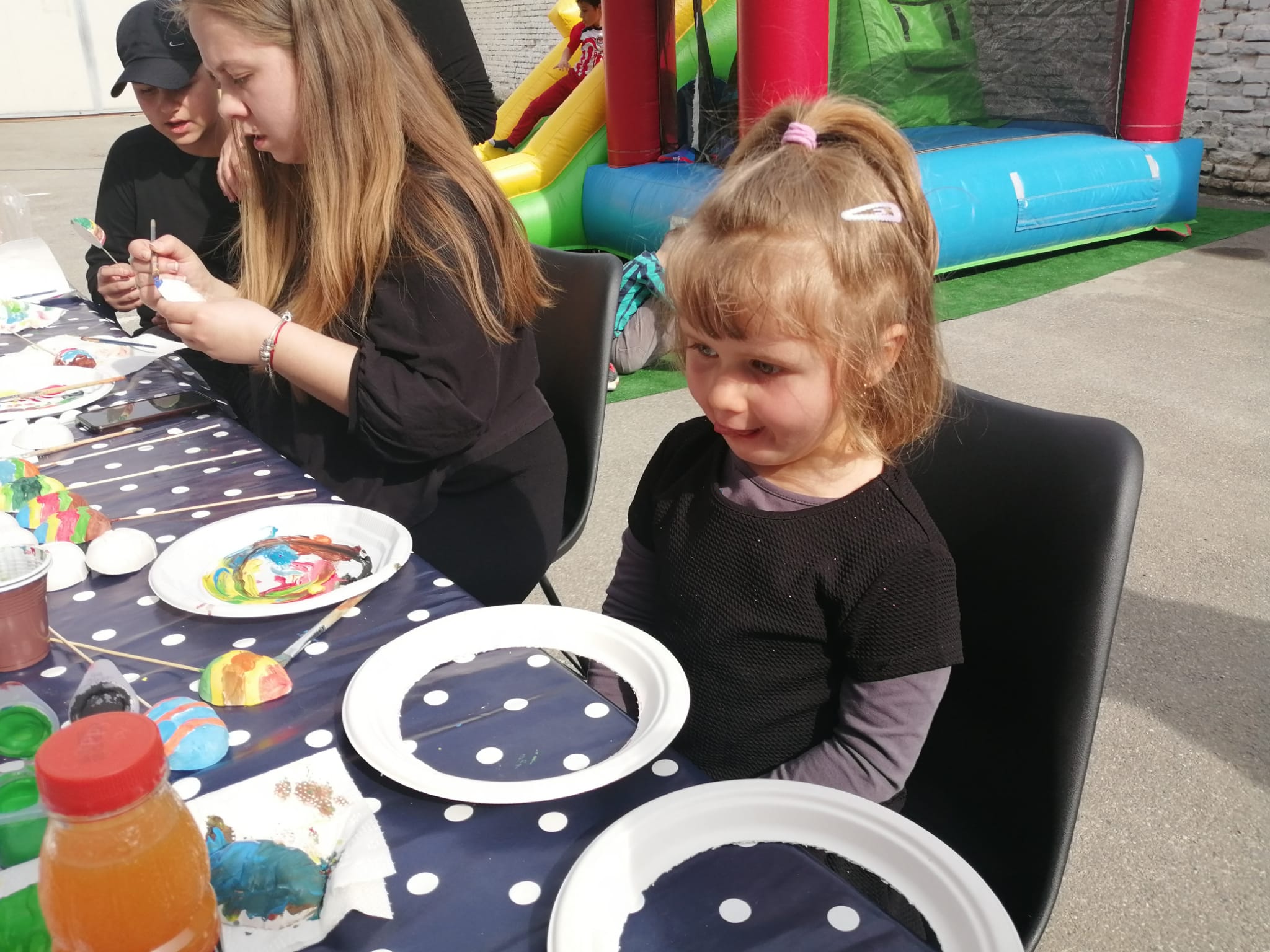 Printre participanți s-a numărat și micuța Cătălina, în vârstă de trei ani. Am întâlnit-o la atelierul de pictat ouă și spunea, timidă, că îi place să deseneze. „Este rușinoasă. A pictat trei ouă până acum, îi place mult!”, adaugă Roxana, sora ei mai mare, ce o însoțea.