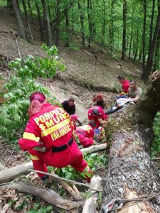 Pompierii militari din cadrul ISU Sibiu au intervenit de urgență în pădurea de la ieșirea din localitatea Jina spre județul Alba, cu o autospecială de primă intervenție și un echipaj SMURD cu medic, pentru a acorda îngrijiri medicale unei persoane prinse sub un trunchi de copac.
