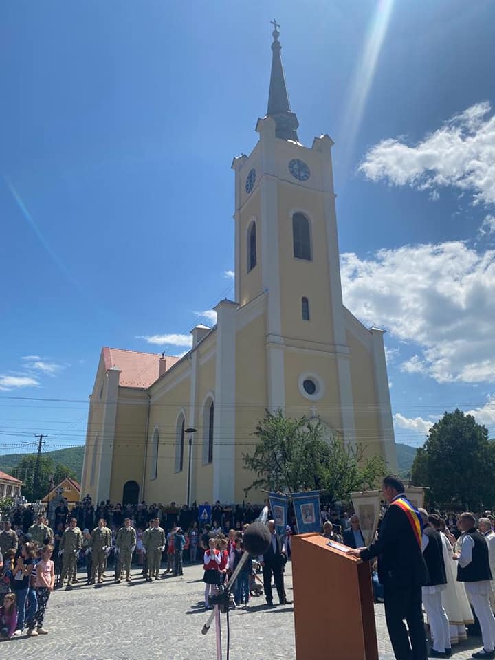 „În această zi, de Înălțarea Domnului, care are o importantă semnificație creștină, comemorăm eroii neamului românesc. Este ziua în care ne plecăm frunțile și rostim o rugăciune în cinstea celor ce au pierit departe de țară și de cei dragi, dar pentru o cauză dreaptă și măreață. Poate n-ar fi rău să îi comemorăm mai des, fiindcă datorită lor avem azi o țară întreagă, în care trăim liberi, iar pentru toate acestea ei au plătit cu prețul vieții. Jertfa ostaților neamului nostru a fost înfăptuită pentru țara noastră, pentru ca noi, părinții și copiii noștri, să putem trăi liber, să mergem la biserică, să ne rugăm lui Dumnezeu, căci cea mai de preț bogăție a neamului nostru este credința creștină. Eroii sunt memoria vie a istoriei noastre. Nu este suficient să-i onorăm prin discursuri, ci trebuie să-i cinstim, întâi de toate, printr-o viață curată, frumoasă, demnă de jertfa lor și, în plus, prin muncă și responsabilitate, pentru ca idealurile în numele cărora ei și-au jertfit necondiționat viața să dăinuie peste veacuri, iar noi să lăsăm generațiilor viitoare o țară liberă”, a spus Gheorghe Călin.