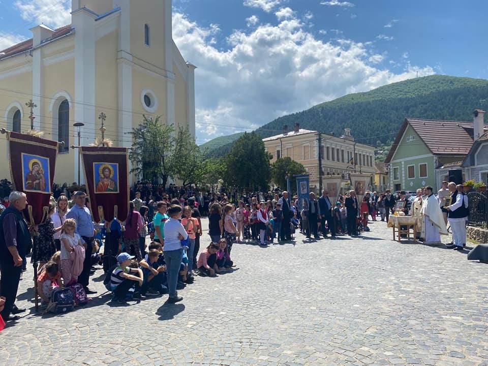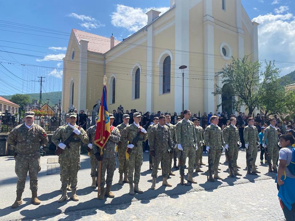 Evenimentul omagial s-a încheiat cu defilarea Gărzii de Onoare şi depunerea coroanelor la Monumentul Eroilor din centrul localității.