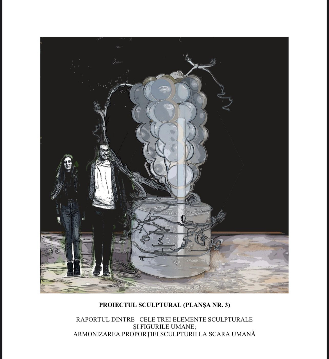 Conceptul statuii, așa cum este prezentat, va avea 3 metri înălțime, trei frunze și 33 de boabe de strugure, intenția fiind de a finanța statuia prin personalizarea fiecărui bob de strugure cu logo-ul cramei, companiei sau persoanelor care vor sponsoriza realizarea statuii.